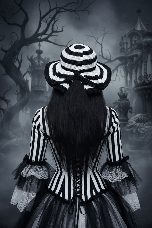 Indulge in dark luxury with our hand-crocheted lingerie set adorned with skulls and studs. This exquisite piece combines Victorian elegance with modern sensuality - featuring delicate skull lace, satin bows, and adjustable straps with O-rings. Perfect for romantic evenings or as a statement piece in your gothic wardrobe. One size fits S-L with fully adjustable ribbons.